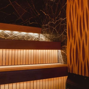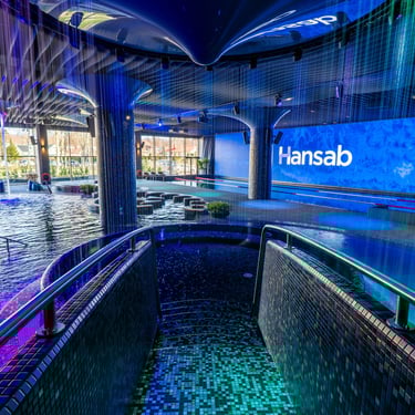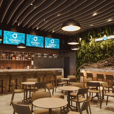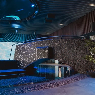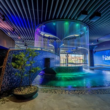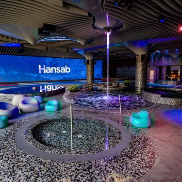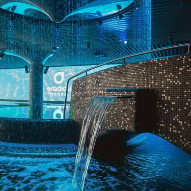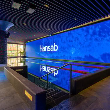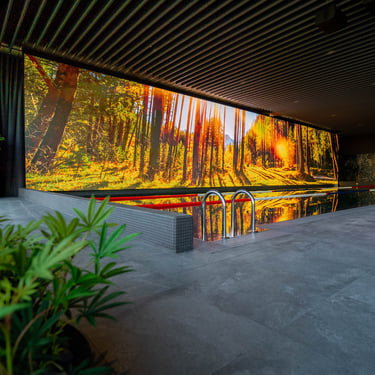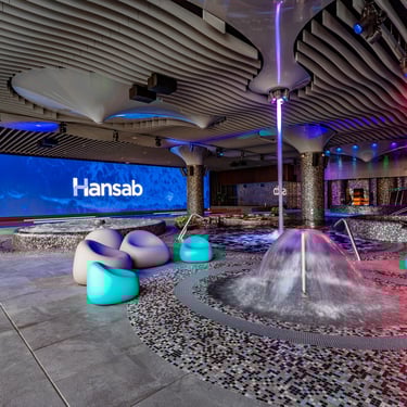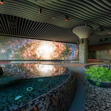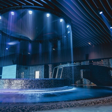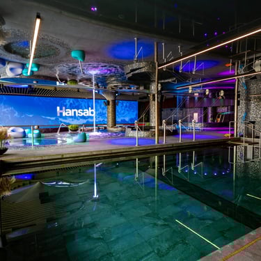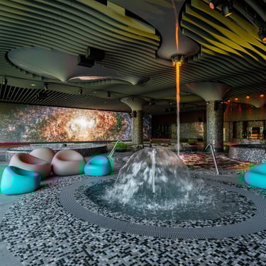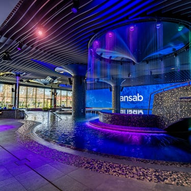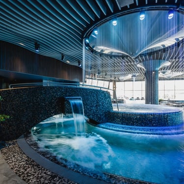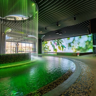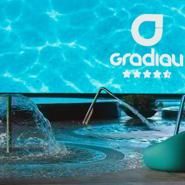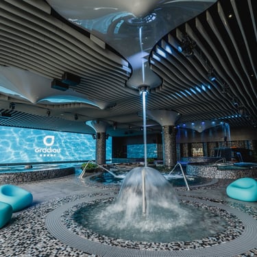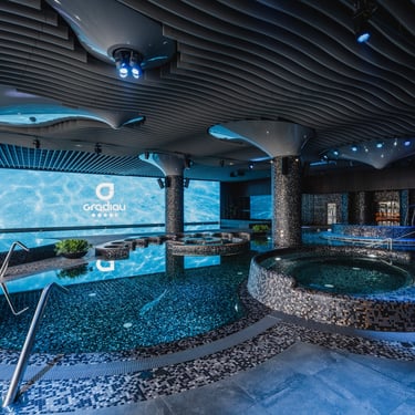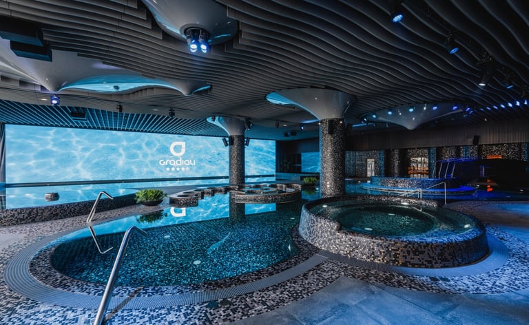 Sanatorijos „Gradiali“ Palangoje 2023-2025 metais pastatyto naujojo korpuso išskirtiniausia dalis - baseinų ir pirčių erdvę. Šią 1700 m² ploto erdvę sudaro 25 m ilgio 3 takų plaukimo baseinas, gydomųjų procedūrų verikali vonia, pramoginis baseinas su kaskadomis ir povandeninėmis srovėmis, 3 sūkurinės vonios, vaikų baseinėlis, uždaras karšto mineralinio vandens baseinas, 3 skirtingų tipų pirtys, kavinė ir uždara tylaus poilsio zona. Vienu ryškiausių šios erdvės akcentu tapo palei plaukimo basino kraštą sumontuotas 25 m ilgio aukštos raiškos ekranas. Bendroje patalpoje įrengtas aukščiausio lygio sceninis apšvietimas bei įgarsinimas, kurie sinchronizuoti su ekrano vaizdais bei lubose įrengtomis kaskadomis leidžia kurti nepaprastus šviesų, vaizdo, garso ir vandens pramoginius renginius. Kaip atsvara ryškiems ekrano vaizdams bei jų atspindžiams vandens ir stiklų paviršiuje, interjero apdailai buvo pasirinktos pakankamai tamsių spalvų medžiagos, o įvairių atspalvių pilkos spalvos sušildytos tamsiai rudos spalvos medžio apdaila, vario spalvos mozaikos akcentais bei žalios spalvos augalais.